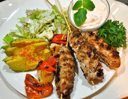 Chicken kebabs with yogurt sauce - So delicious and incredibly flavorful marinated grilled chicken skewers served with a side of lettuce - yogurt sauce .